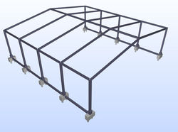 Descrição: Galpão industrial em estrutura metálica; Cobertura treliça tipo shed; Vão livre frontal de 20m; Altura útil 6m; Fundação indireta em concreto armado.